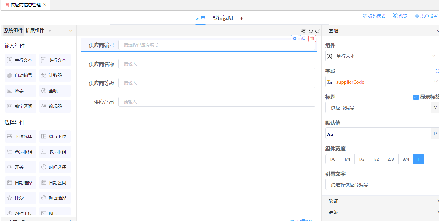 参考"第一个表单"文档创建"供应商信息管理"表单。
