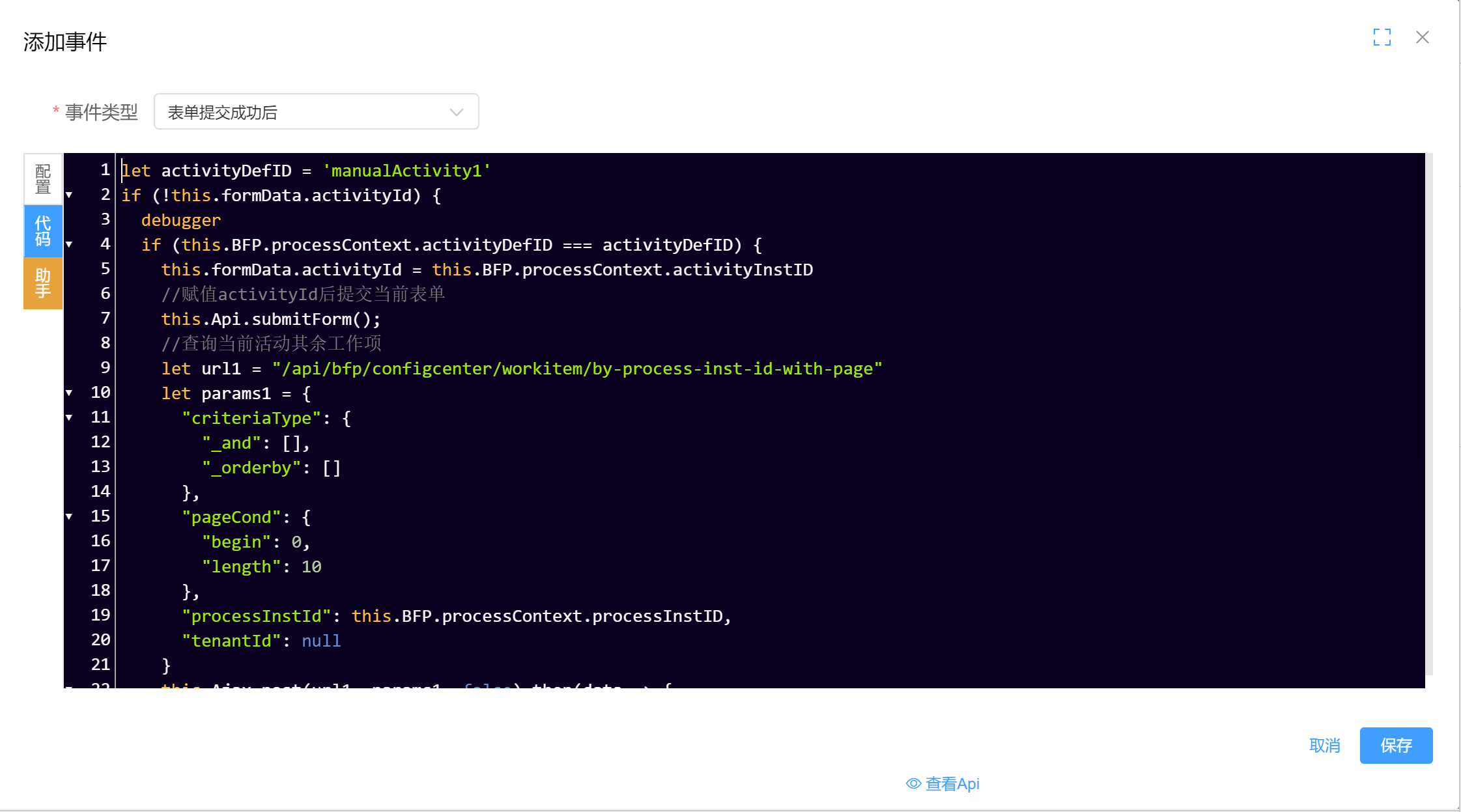 2.添加表单提交成功后事件,在多人审批环节且activityId为空时,查询、过滤当前流程实例下的工作项,调用saveWorkItem方法更新表单状态