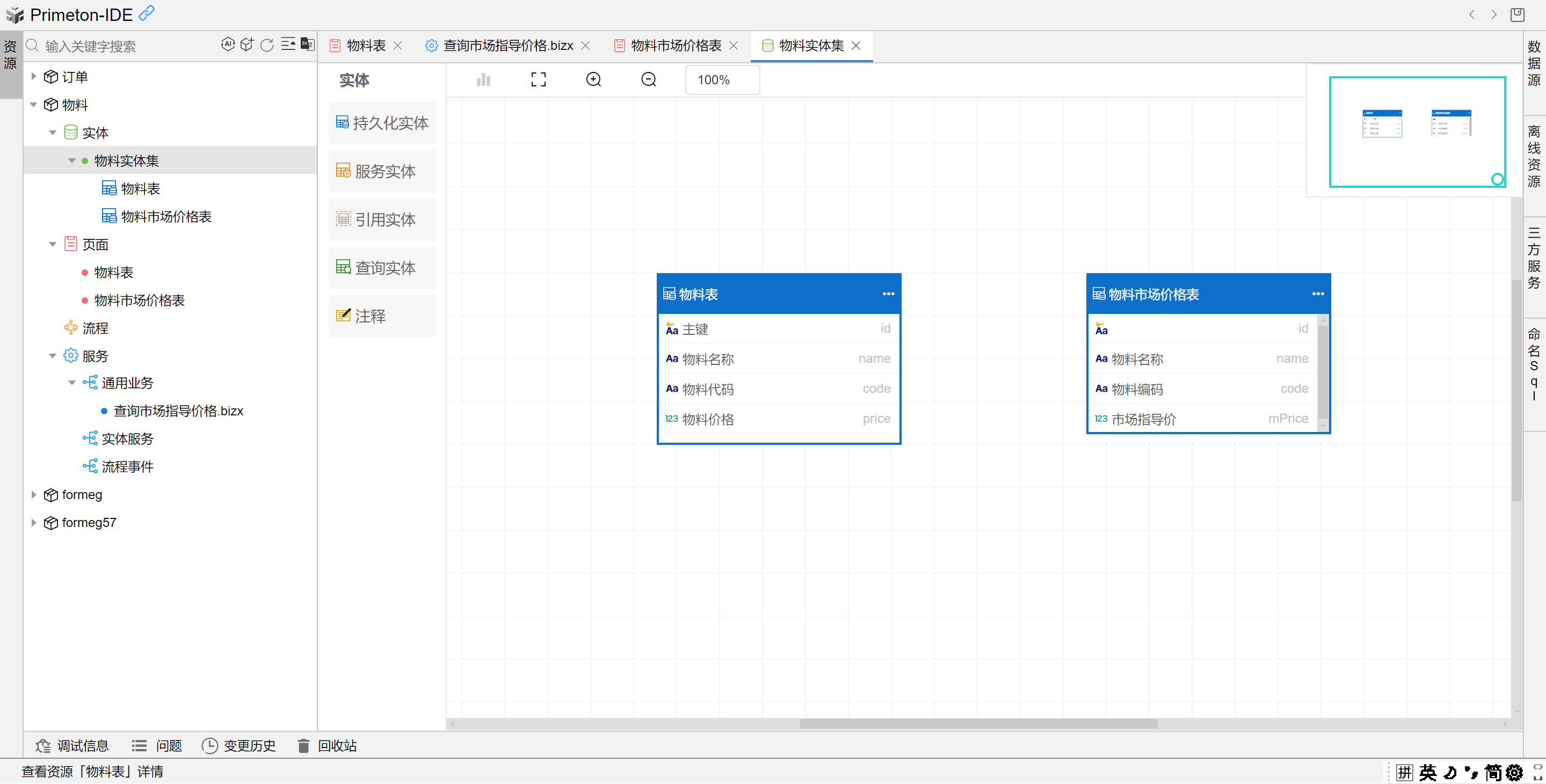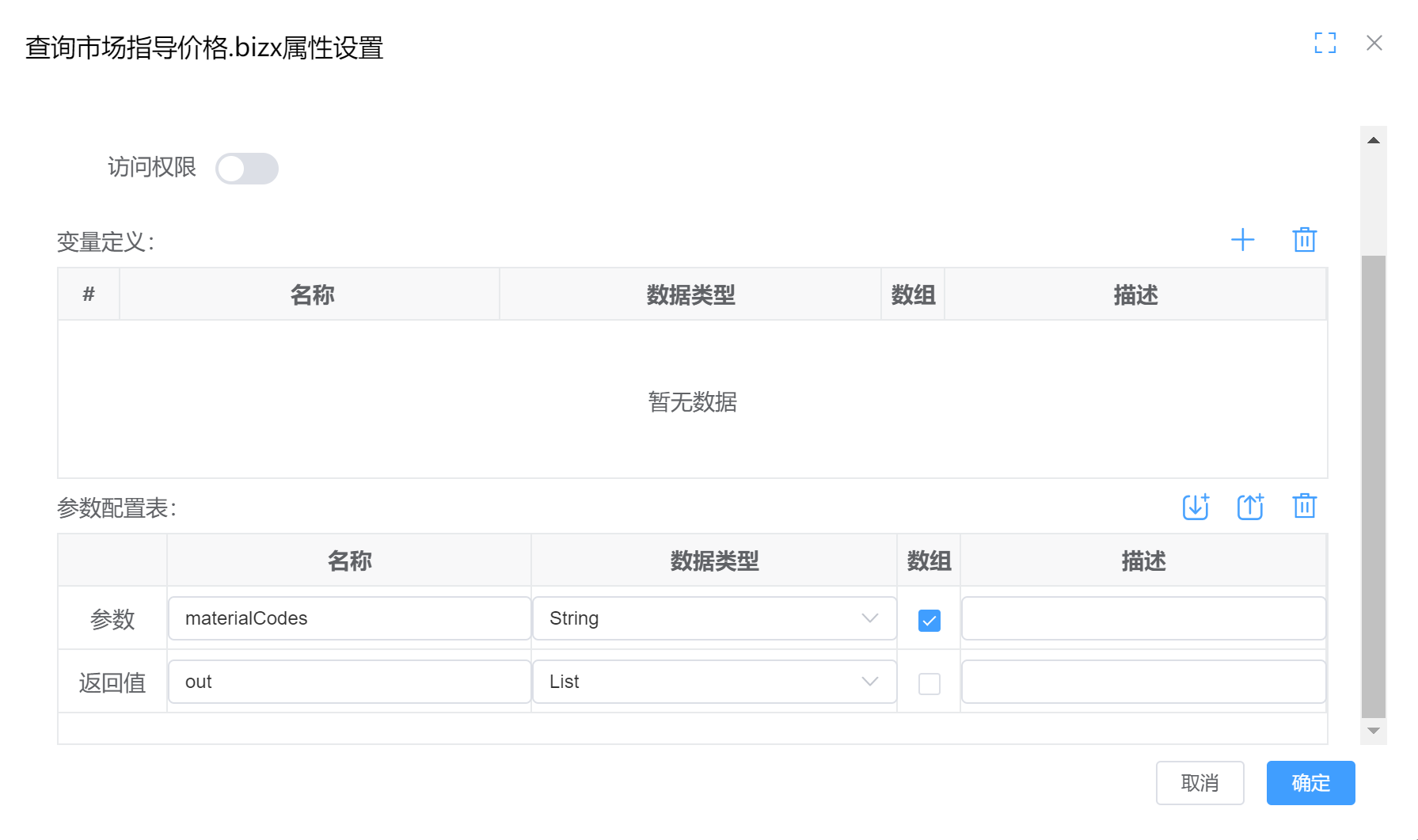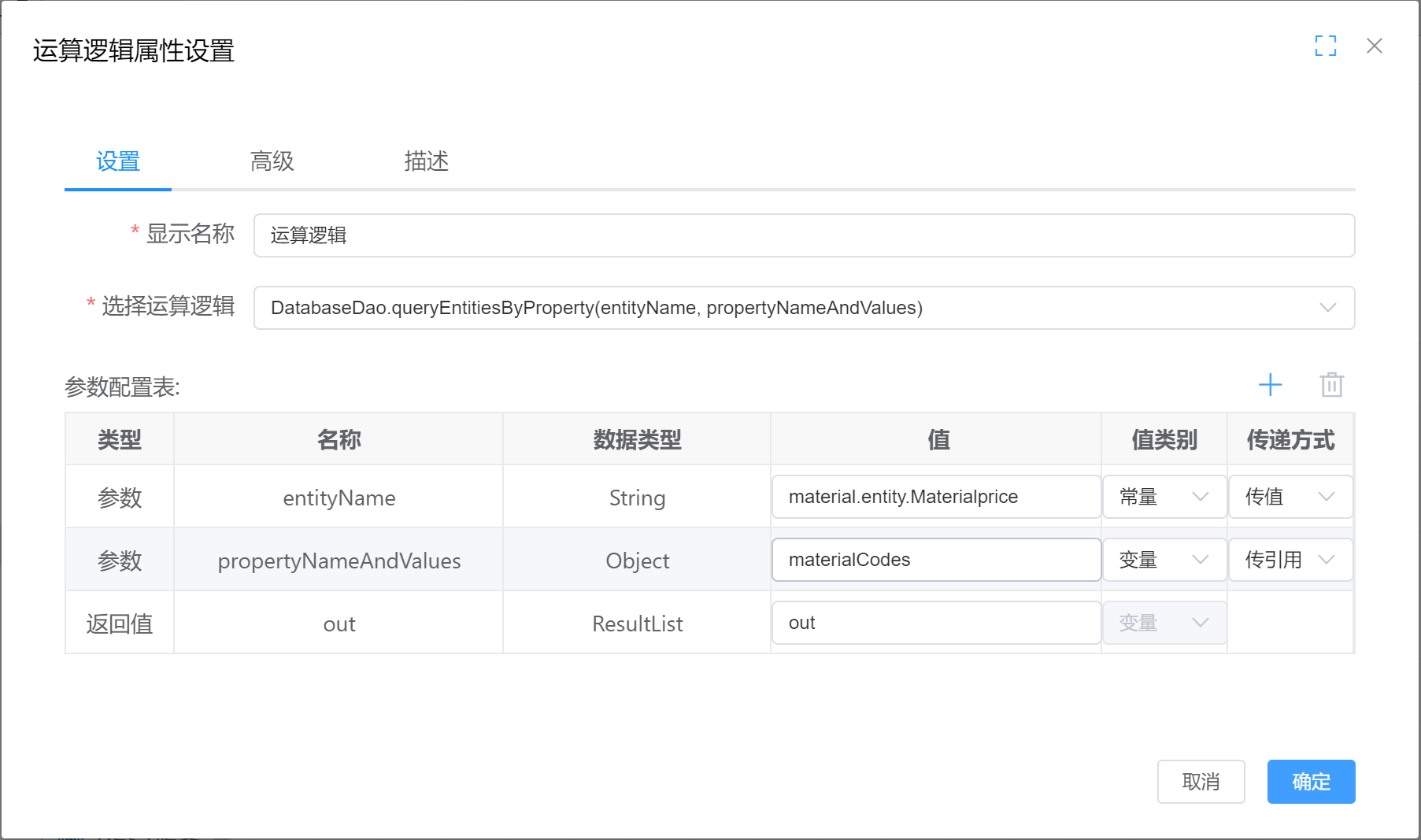 在服务-通用业务中新建服务,通过queryEntitiesByProperty获取物料市场指导价格: