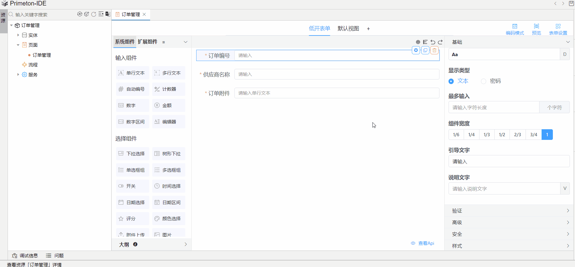 “订单管理”表单中需要一次上传多个附件,本文以该场景为例讲解表单中一次上传多个附件的实现。