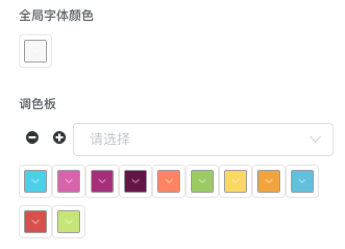 调色板用于调整图形系列色系,全局字体颜色用于调整组件字体颜色;
