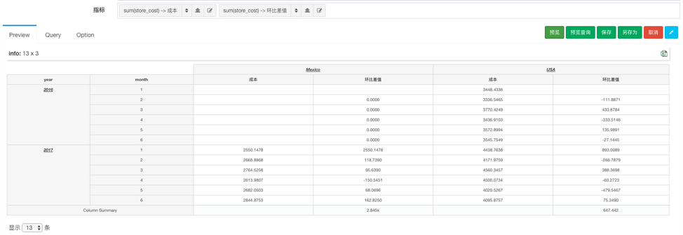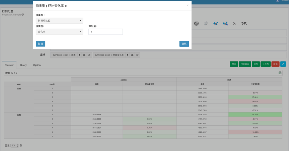 环比, 同比统计属于高级统计操作, 交互稍微复杂些