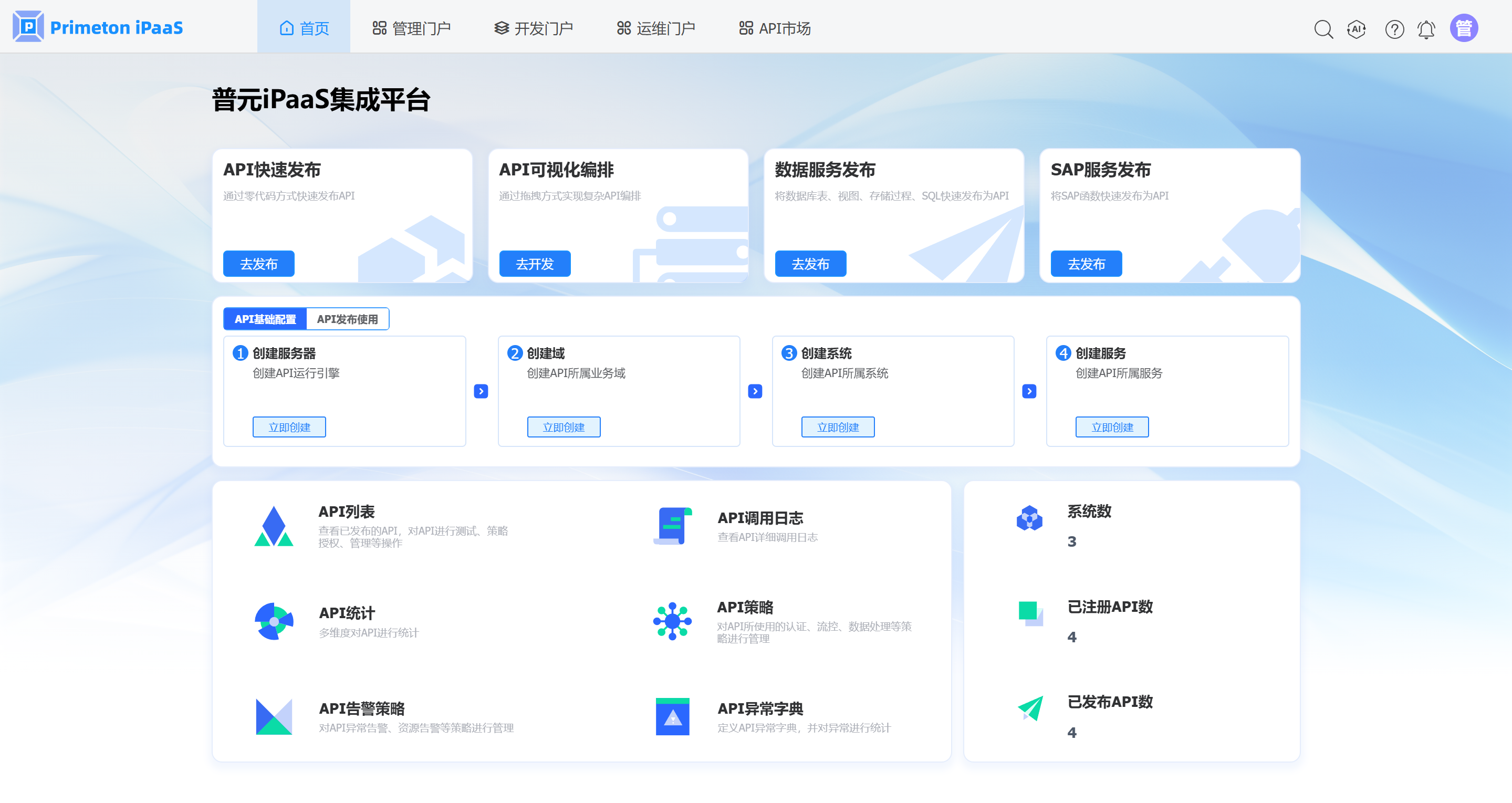 登录成功后,进入iPaaS Portal首页页面。