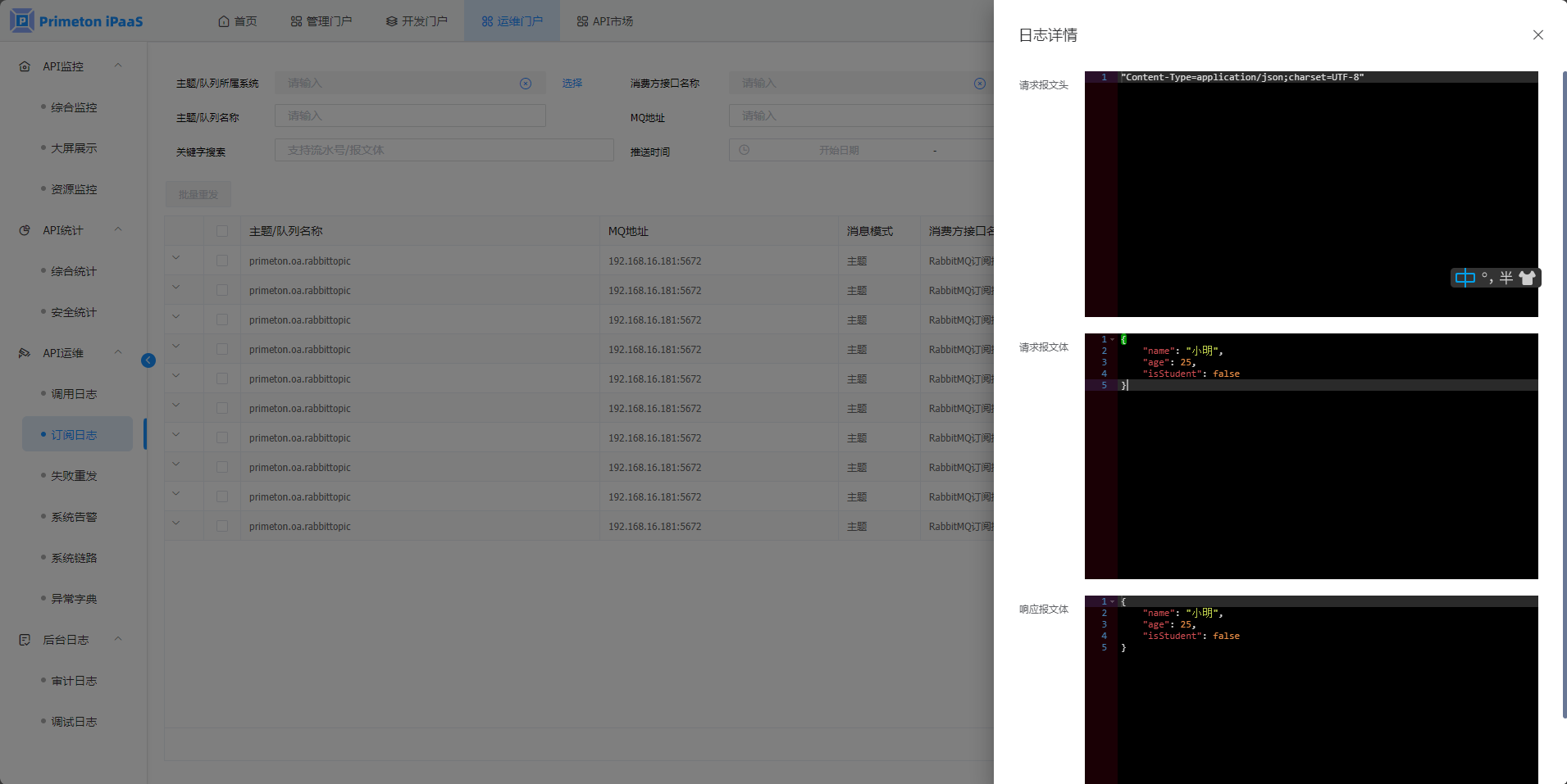 • HTTP方式消息发布接口日志