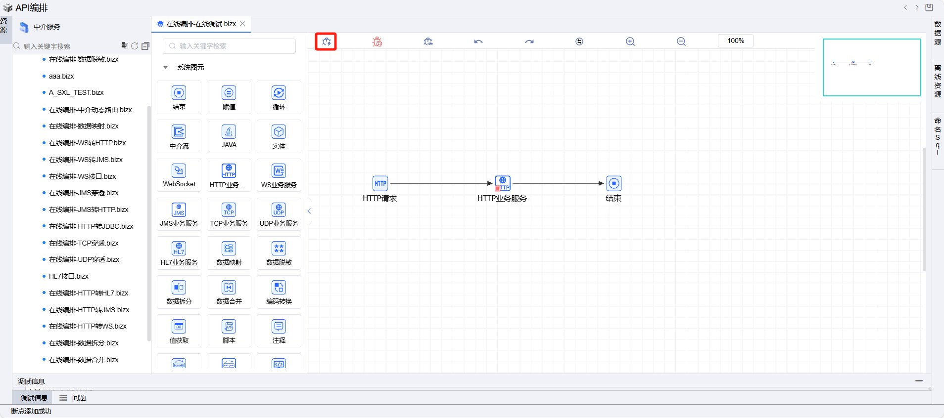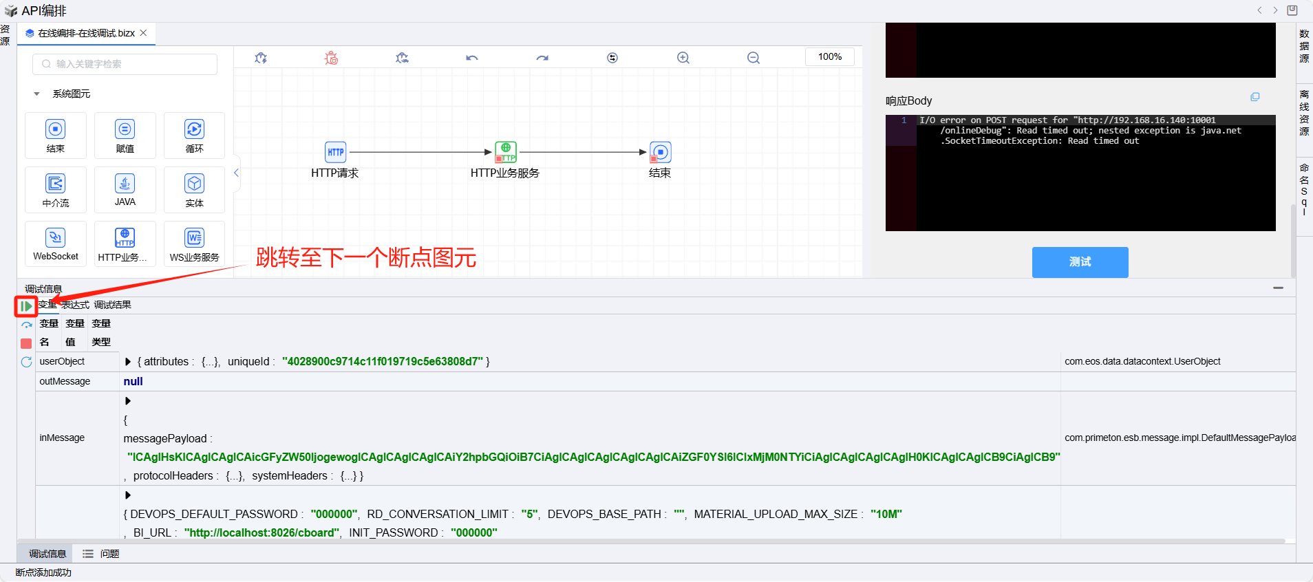 在 HTTP业务服务 图元上点击鼠标右键,点击“设置断点”。