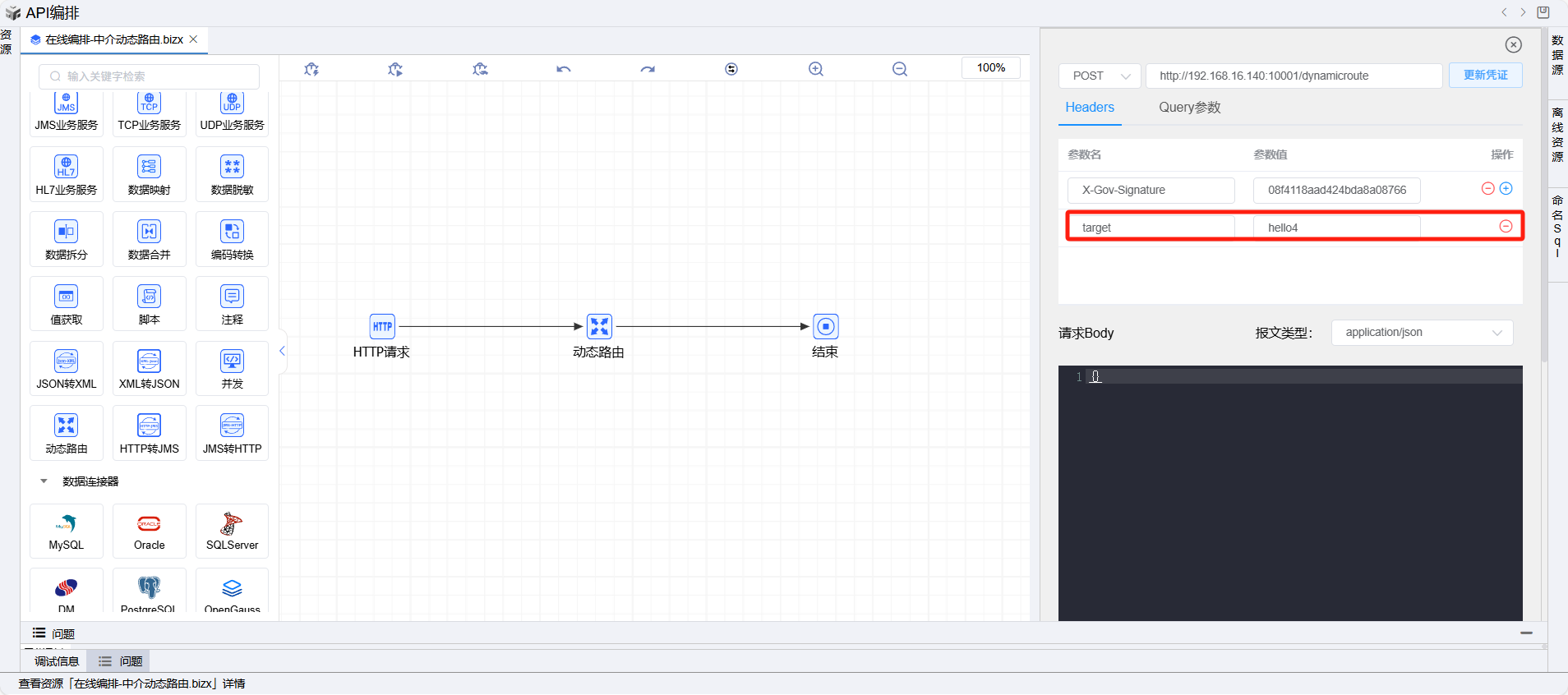 打开测试对话框,填写Header参数"target"="hello3"。如下: