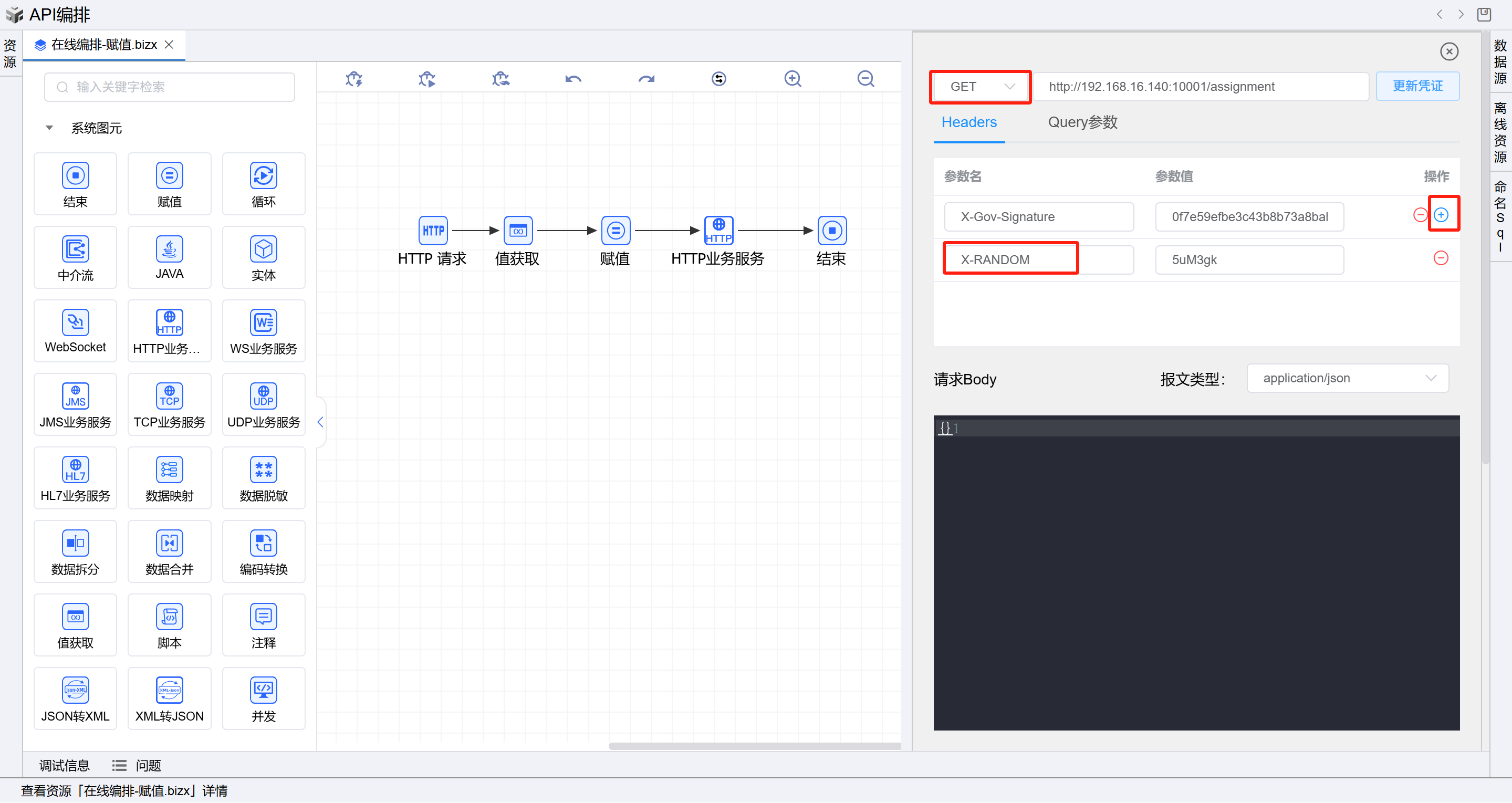点击测试,在业务服务方可以看到请求头中