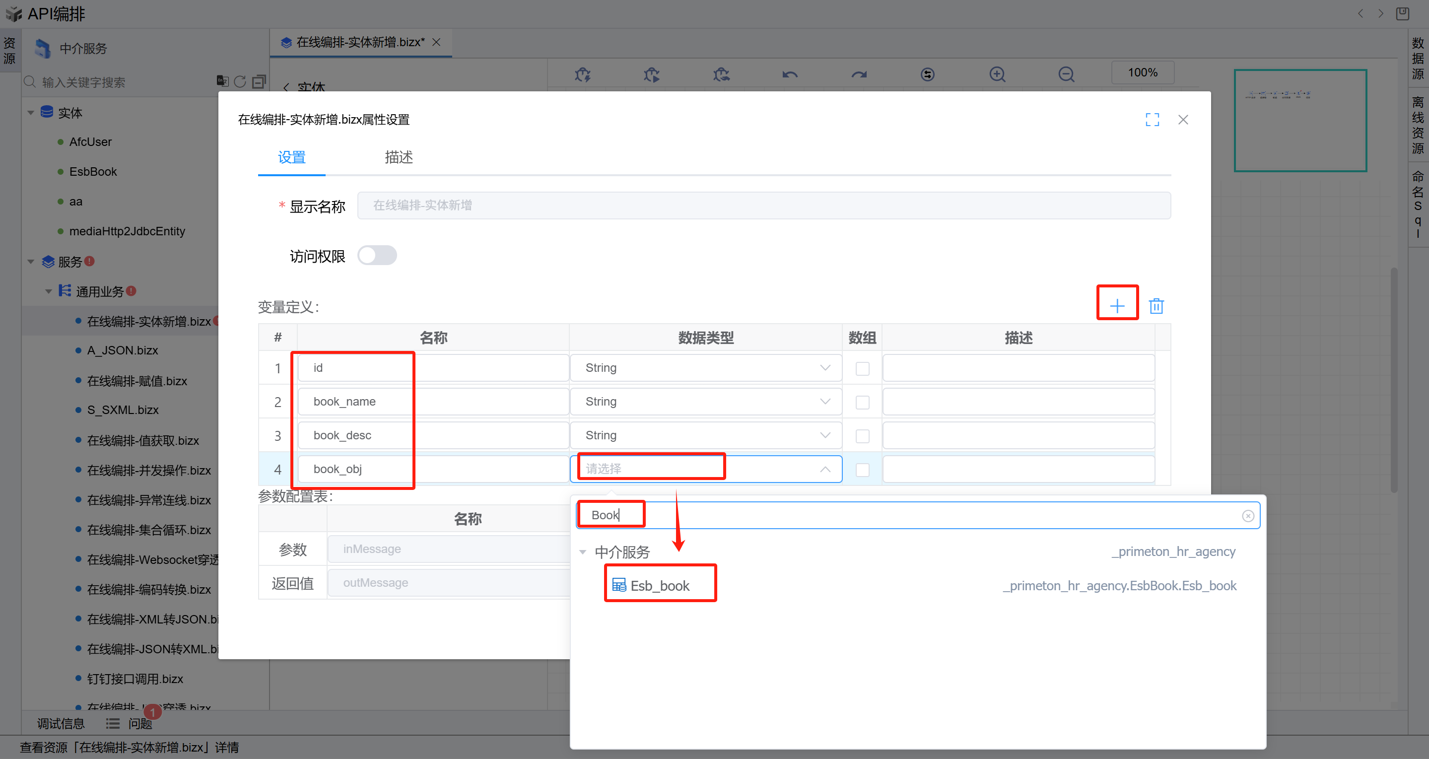 1. 画布背景打开设置的全局变量,id,book_name,book_desc,book_obj(实体对象)