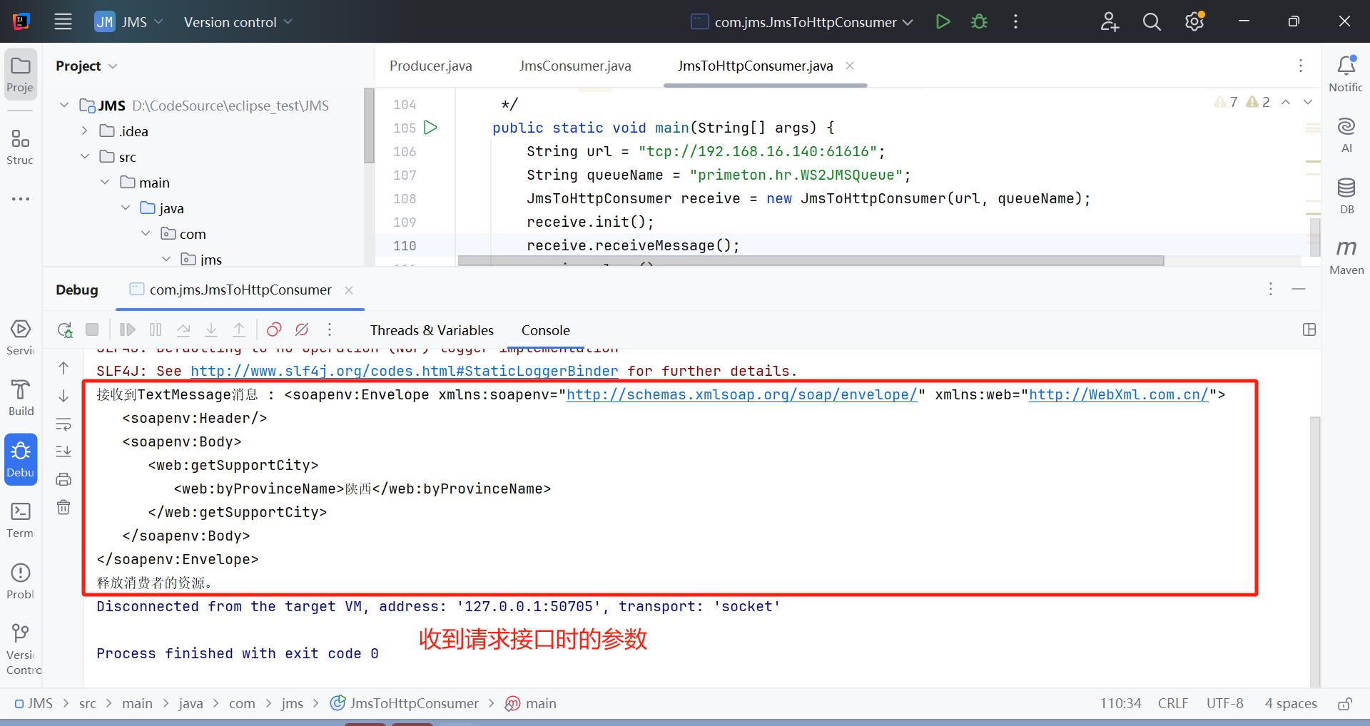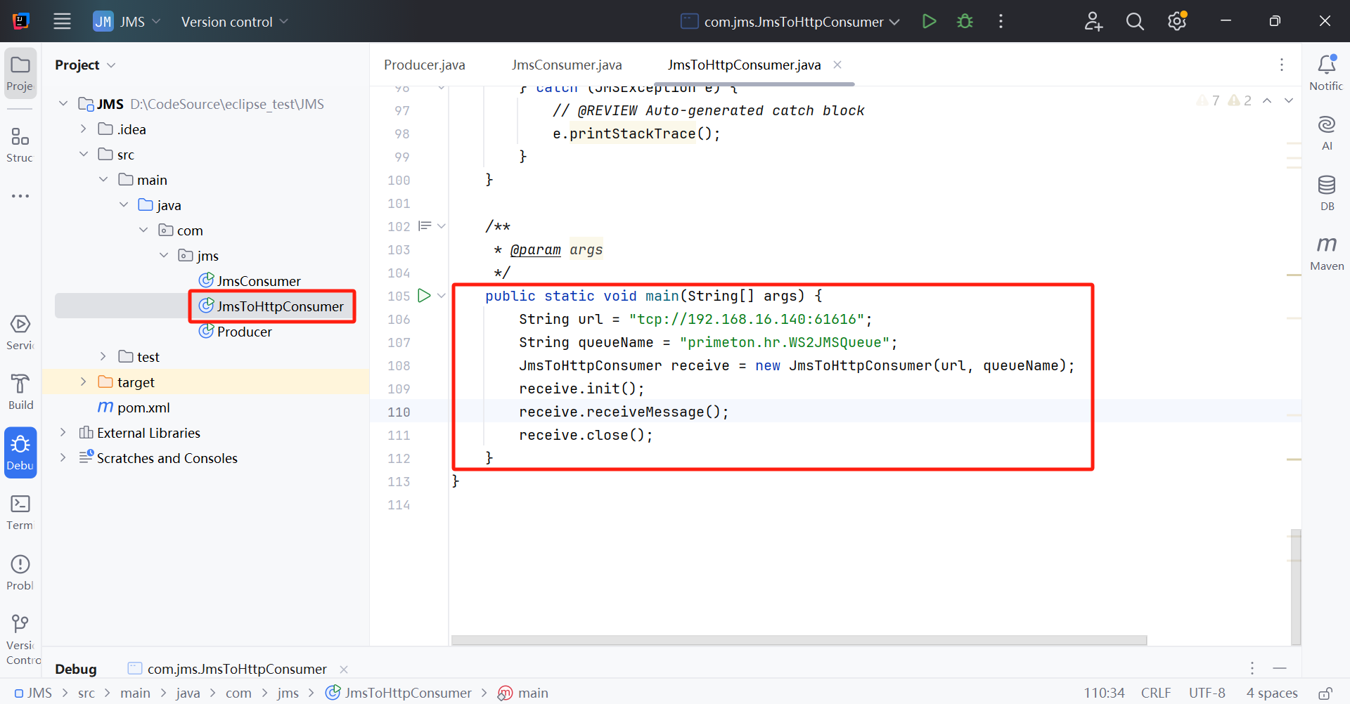 修改类JmsToHttpConsumer(类路径:com.jms.JmsToHttpConsumer)Main方法中的属性。