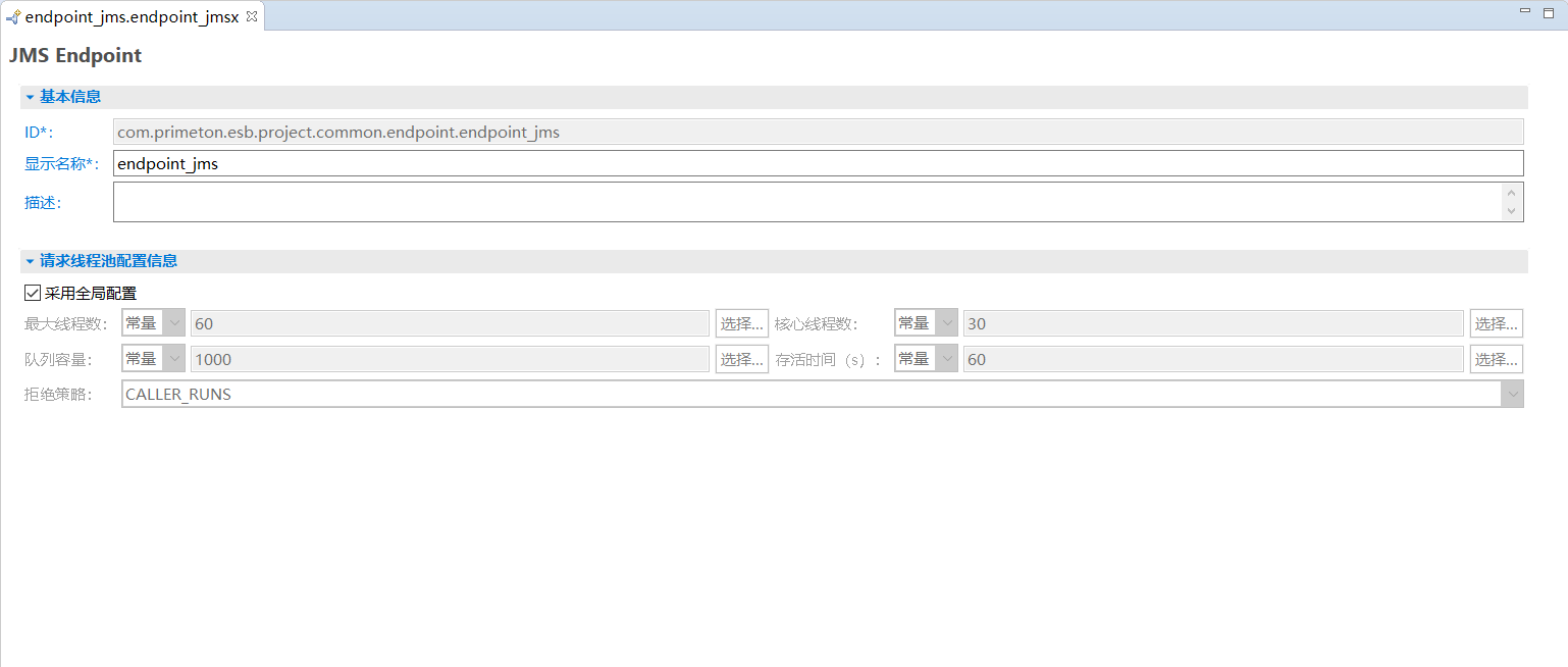- 文件名:用于存储JMS Endpoint配置的文件名。需要保证在ESB工程中唯一。