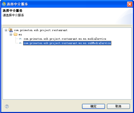 在"设置对话框"窗口中点击业务服务后面的"浏览"按钮,弹出"选择中介服务"窗口,选择对应的中介服务后,点击"确定",如下图所示: