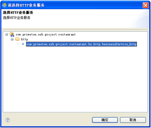 在"设置对话框"窗口中点击业务服务后面的"浏览"按钮,弹出"选择HTTP业务服务"窗口,选择对应的HTTP业务服务后,点击"确定",如下图所示:
