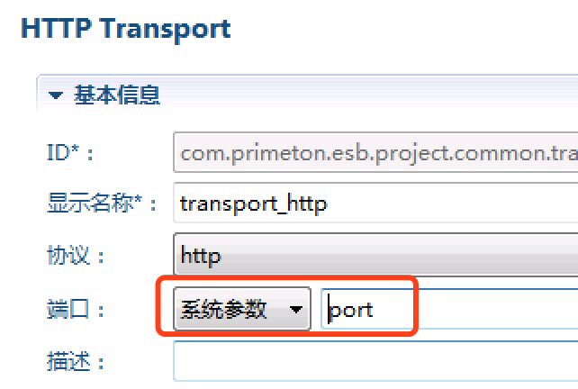 其次,在HTTP Transport 的基本信息中的端口选择“系统参数”,输入port,重启server,方可生效。