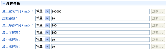 - 最大空闲时间: 连接的最大空闲时间。当连接超过该设定值时,将被强行回收。如果连接在该设定时间内,没有完成操作,也被强行回收。