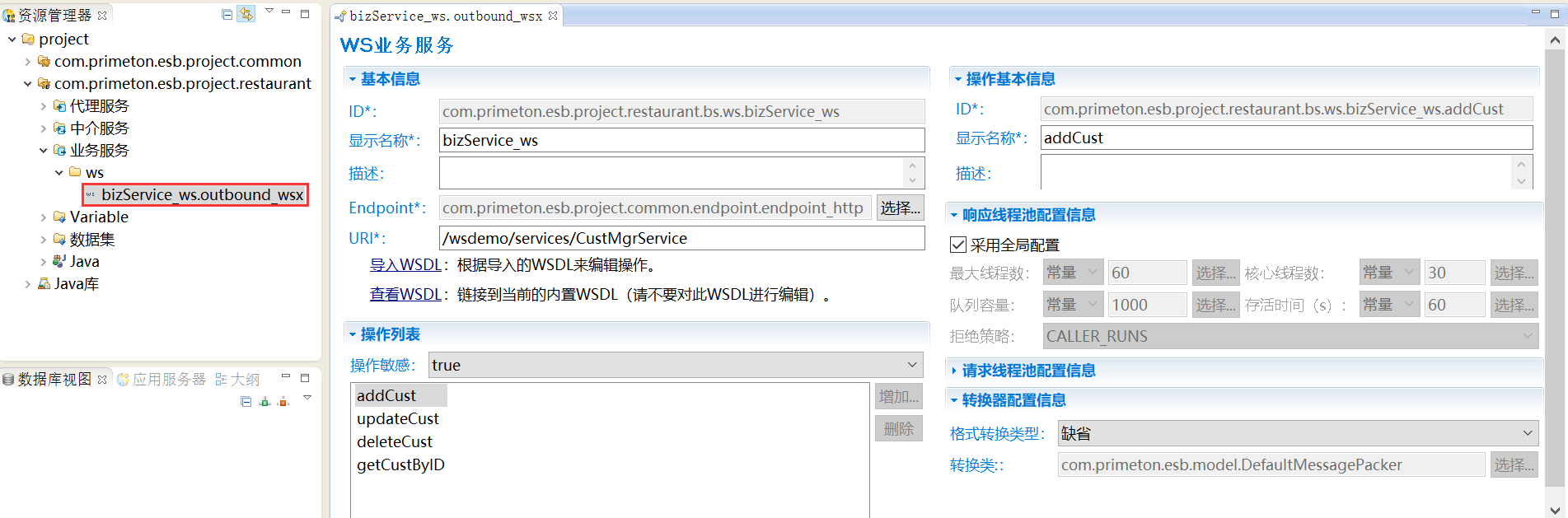 6. 单击工具栏的保存,完成WS业务服务的创建,如下图所示。