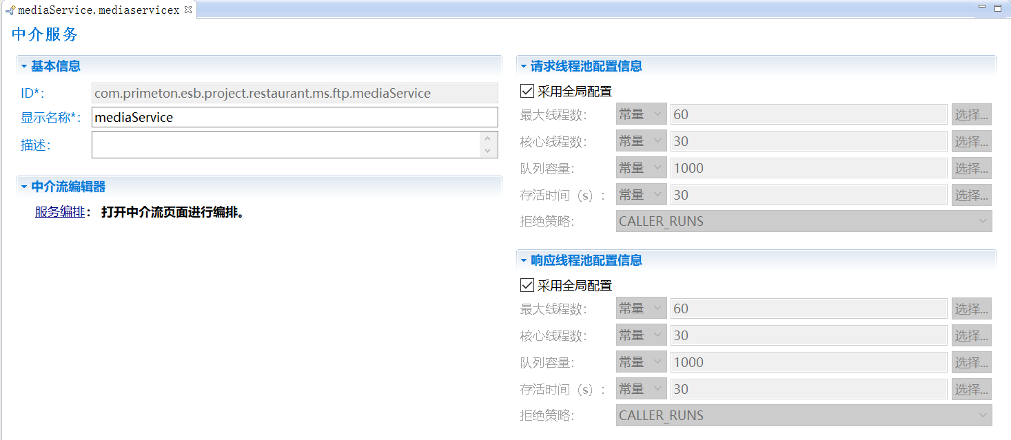 3. 单击“完成”,进入右侧的“中介服务”的编辑界面中,如下图所示。