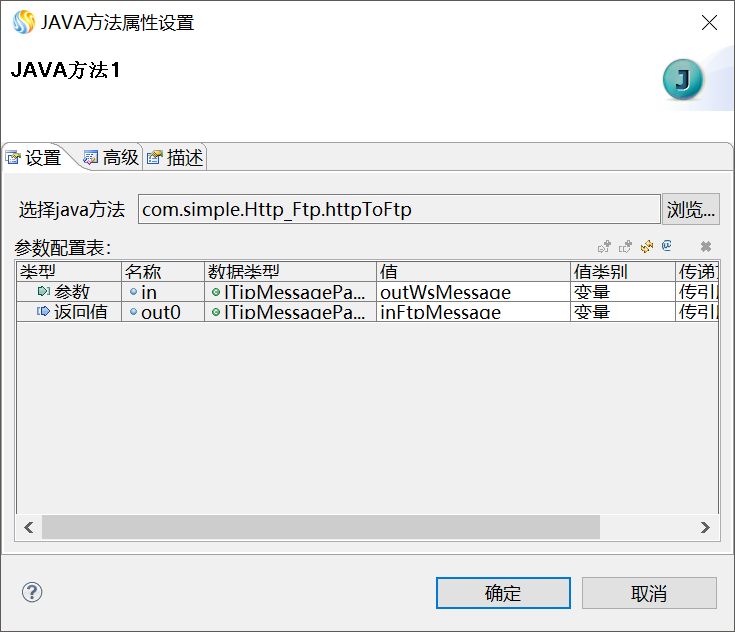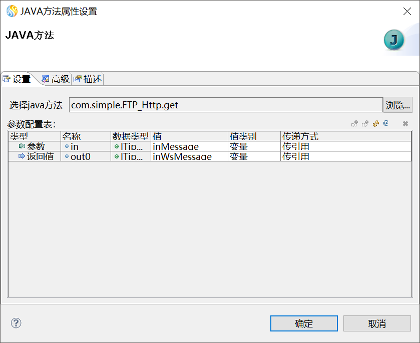 6. 在"JAVA方法属性设置"中设置"参数配置表",如下图所示。