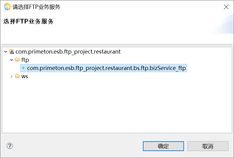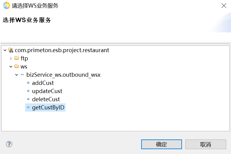 1. 在弹出的"请选择WS业务服务"窗口中,选择对应的WS业务服务,单击“确定”,如下图所示。