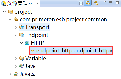 5. 单击“完成”,系统返回ESB开发透视图,创建的项目在"资源管理器"视图中显示,如下图所示。