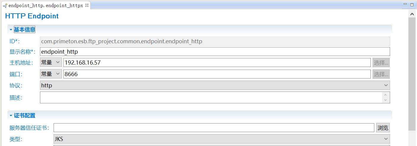 4. 在资源管理器中,双击创建的HTTP Endpoint,打开HTTPEndpoint编辑器,修改相关参数。如下所示。