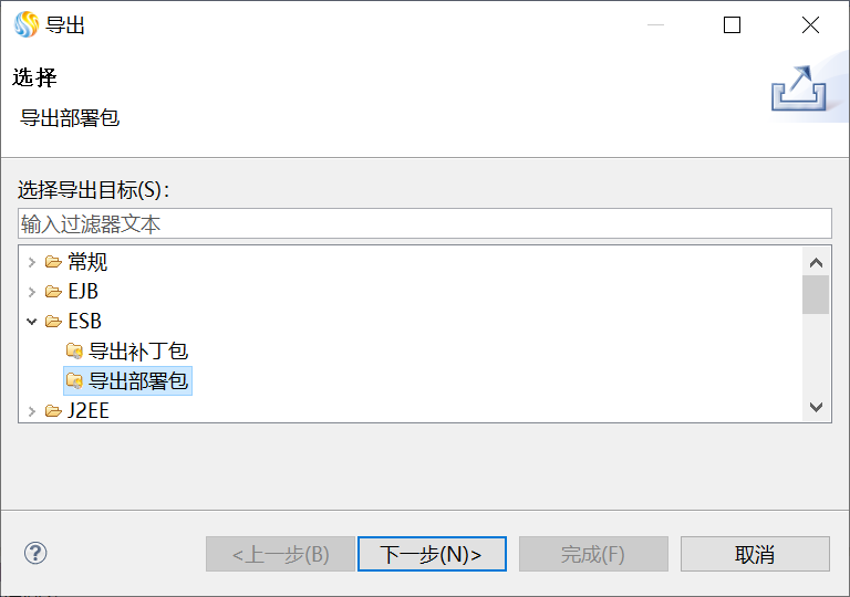 在"导出"界面中,选择"ESB > 导出部署包",单击"下一步",如下图所示。