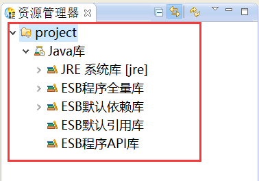 单击“完成”,系统返回ESB开发透视图,创建的项目在"资源管理器"视图中显示,如下图所示。