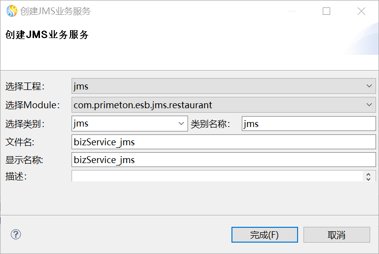 在打开的“创建JMS业务服务”对话框中,输入类别信息,如下图所示。