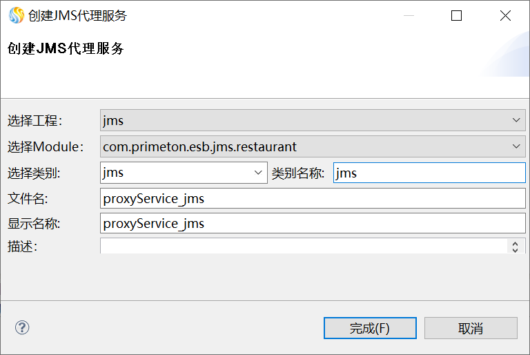 在打开的“创建JMS代理服务”对话框中,输入类别信息,如下图所示。