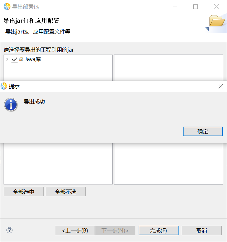 单击“完成”,提示“导出成功”,表明已经成功导出这两个Module,如下图所示。