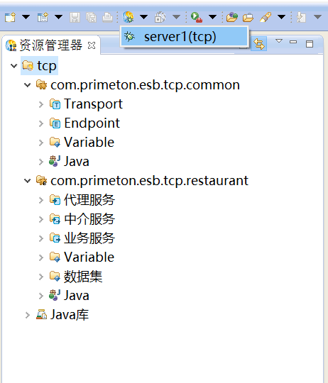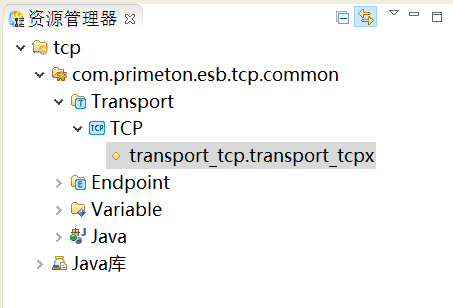1. 在创建的ESB项目的“Transport”上,右键选择“创建 > TCP类型Transport”,如下图所示。