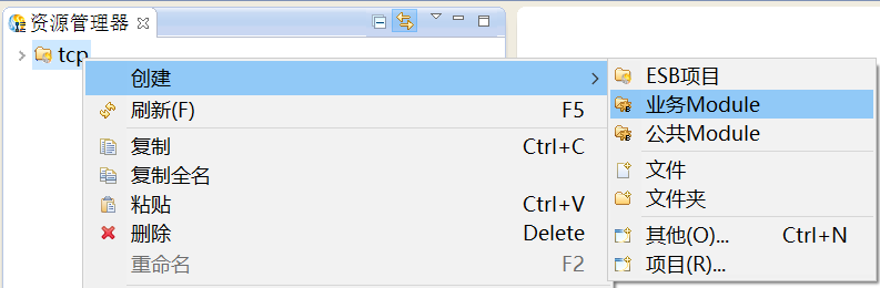 1. 在资源管理器中,选中创建好的项目,鼠标右键选择“创建 > 业务Module”,创建业务Module,如下图所示。