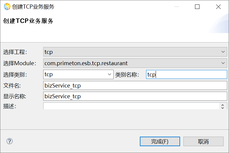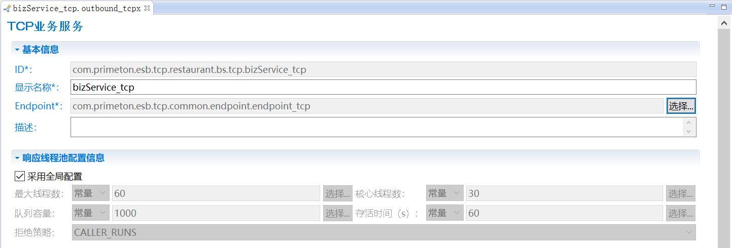 3. 单击“完成”,在打开的“TCP业务服务”的编辑界面中,设置显示名称、Endpoint,如下图所示。