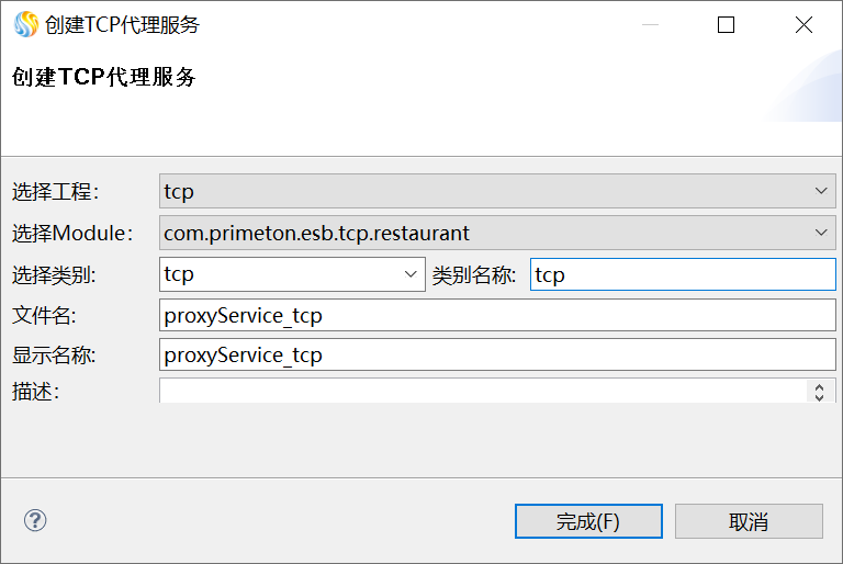 2. 在打开的“创建TCP代理服务”对话框中,输入类别信息,如下图所示。