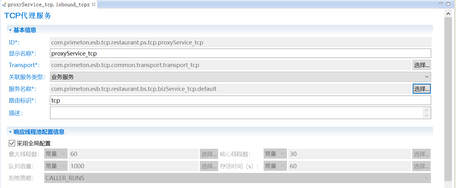 3. 单击“完成”,在TCP代理服务的编辑界面中,设置TCP代理服务的配置,如下图所示。