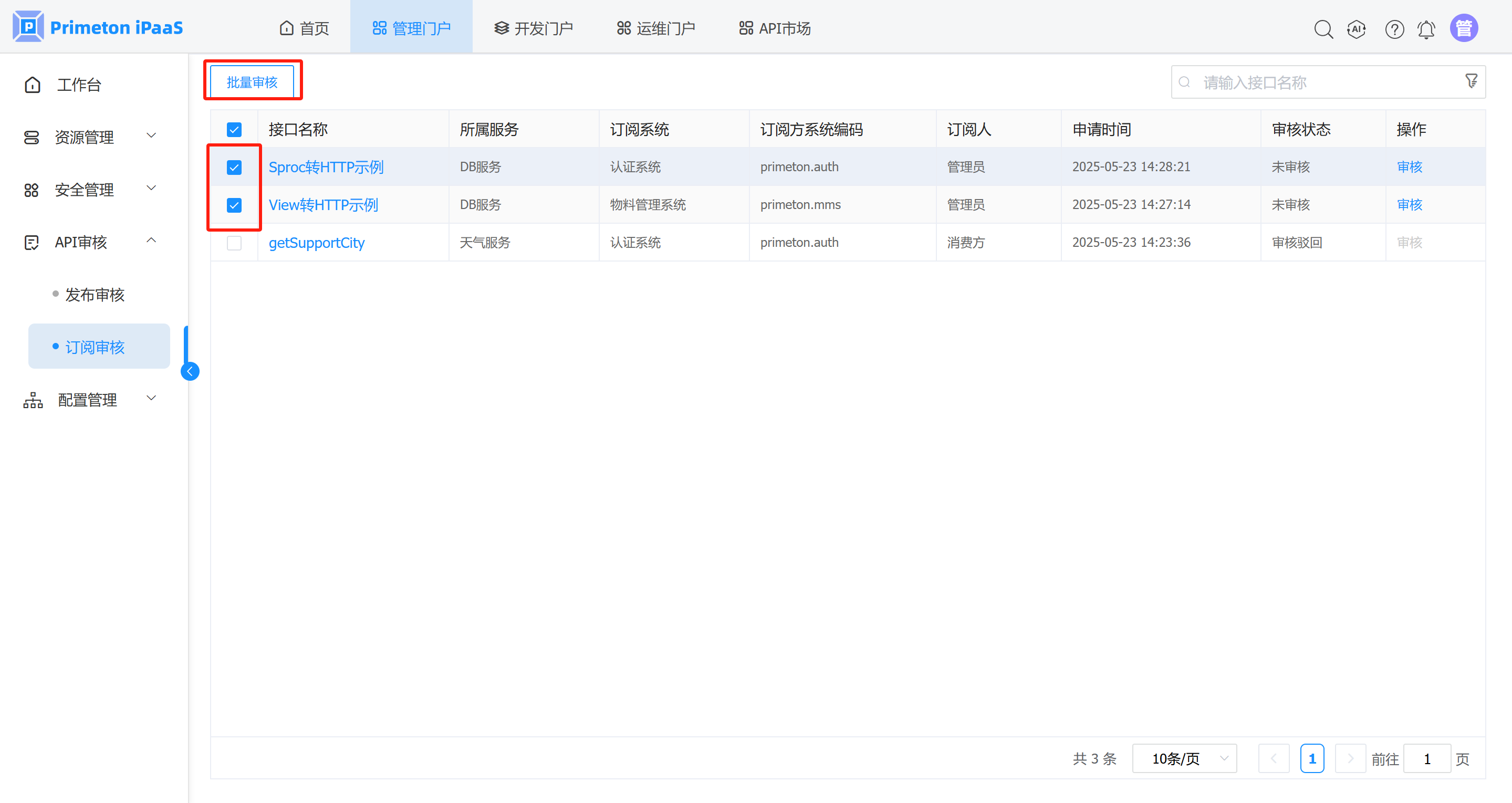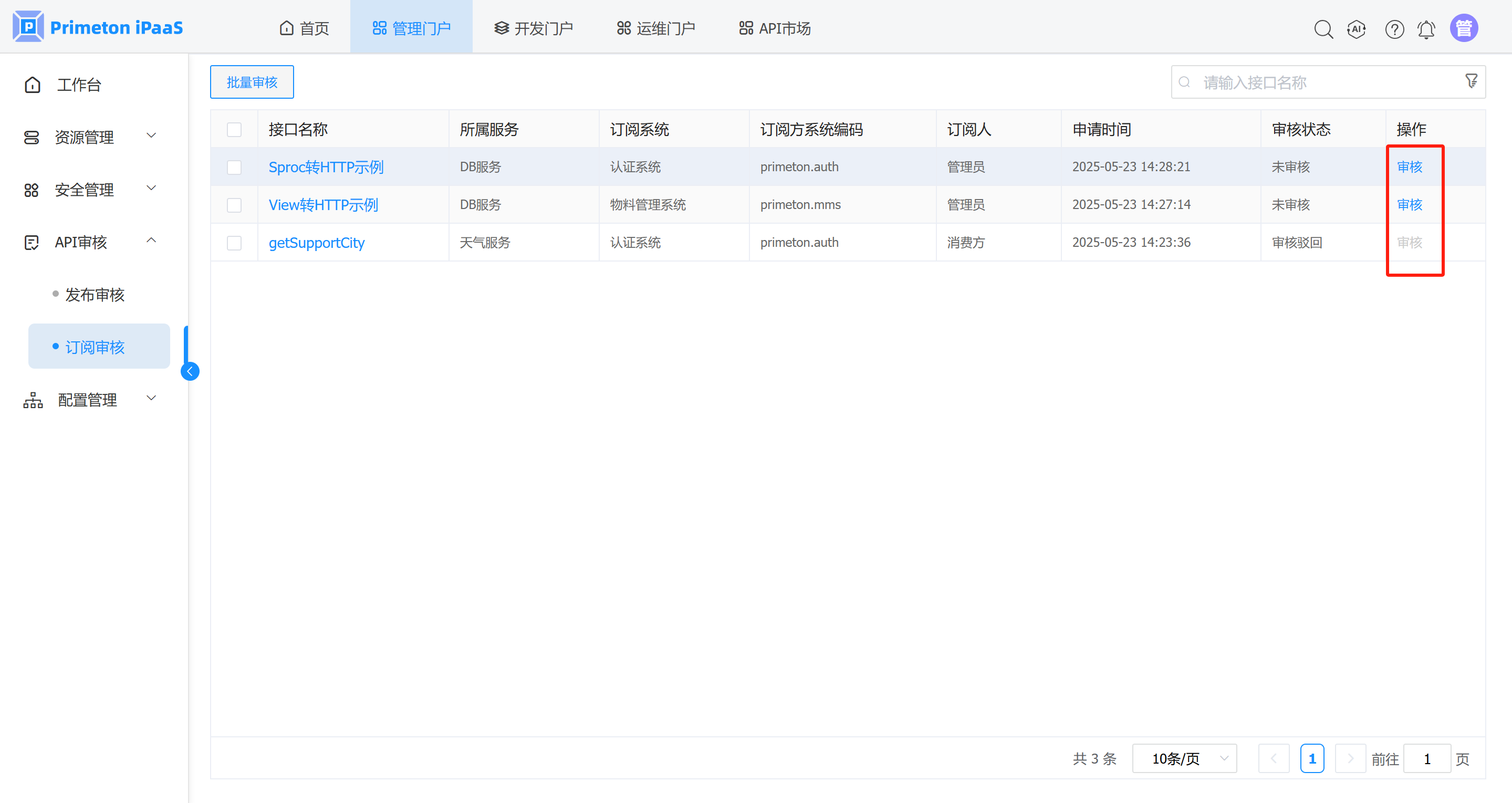 消费方在API门户订阅接口,需要先经过管理人员审核,只有审核通过后,消费方才能使用已订阅的接口。