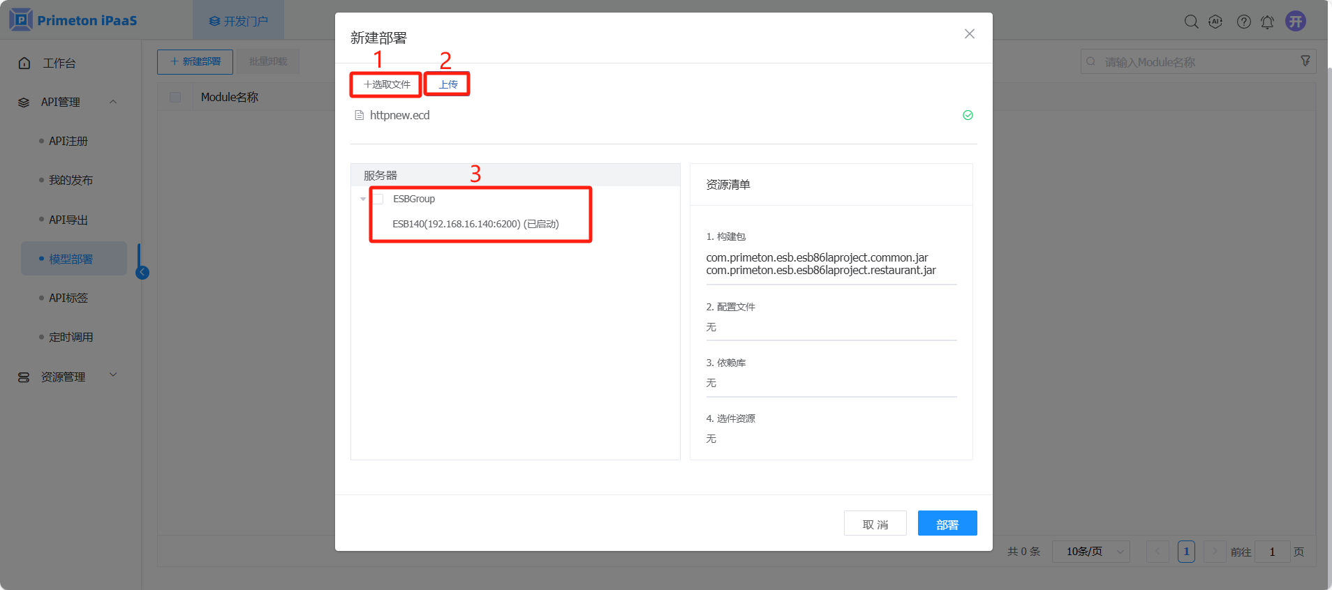 1. 将导出的模型在“开发门户 > API管理 > 模型部署“页面进行导入。