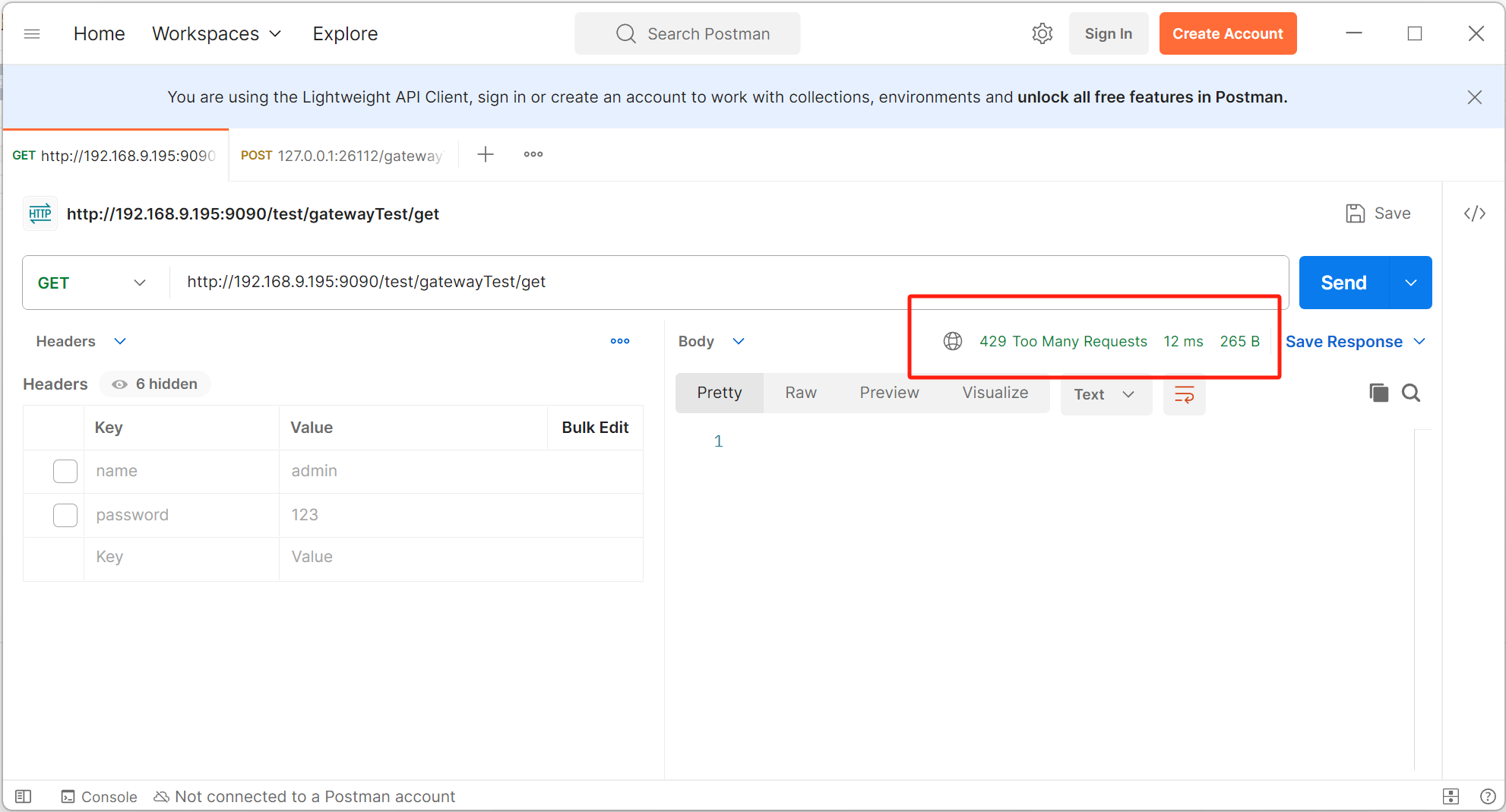 2. 限流生效时效果如下: