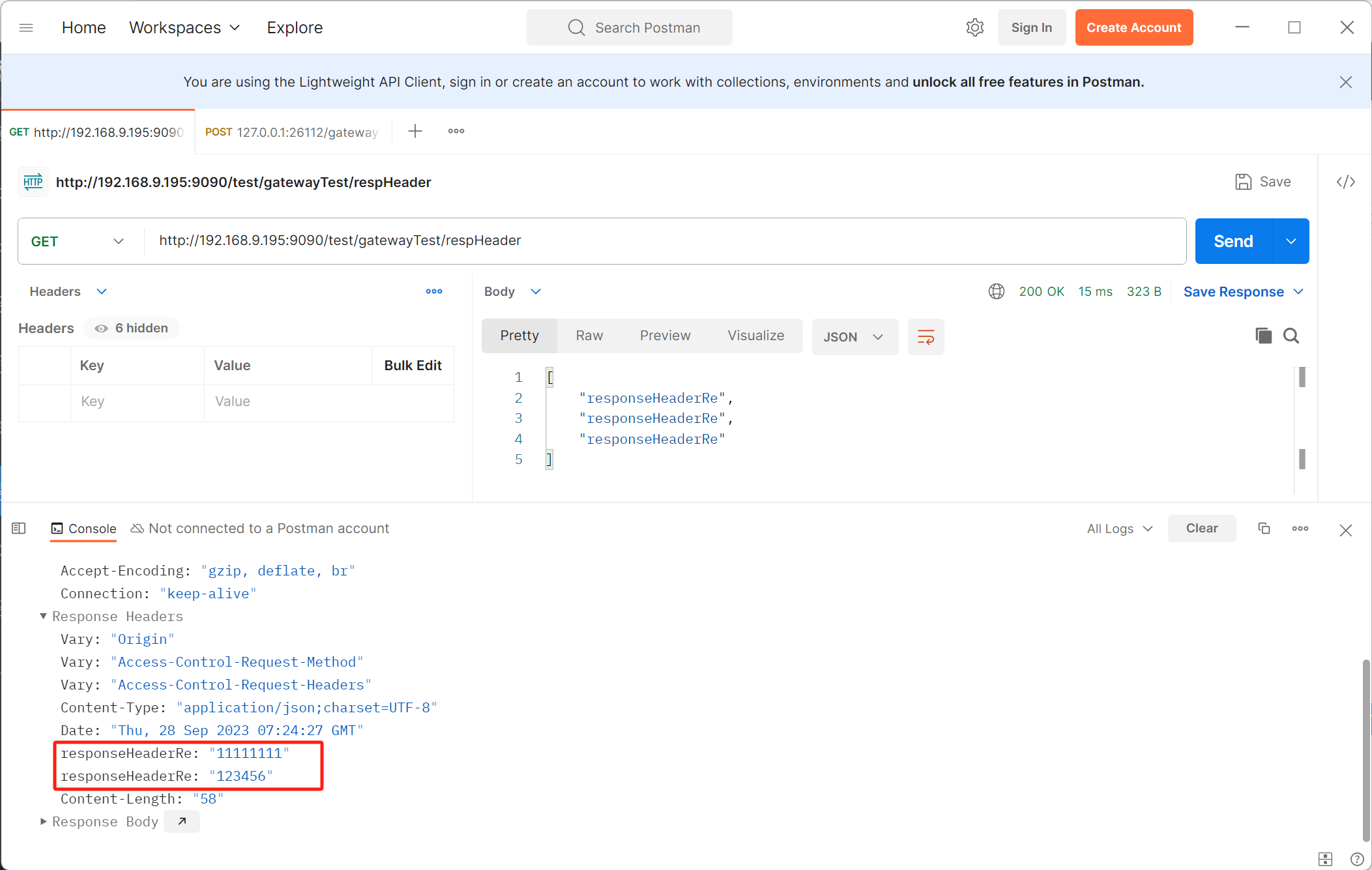 配置了策略,此时返回的响应头中只留下不重复数据: