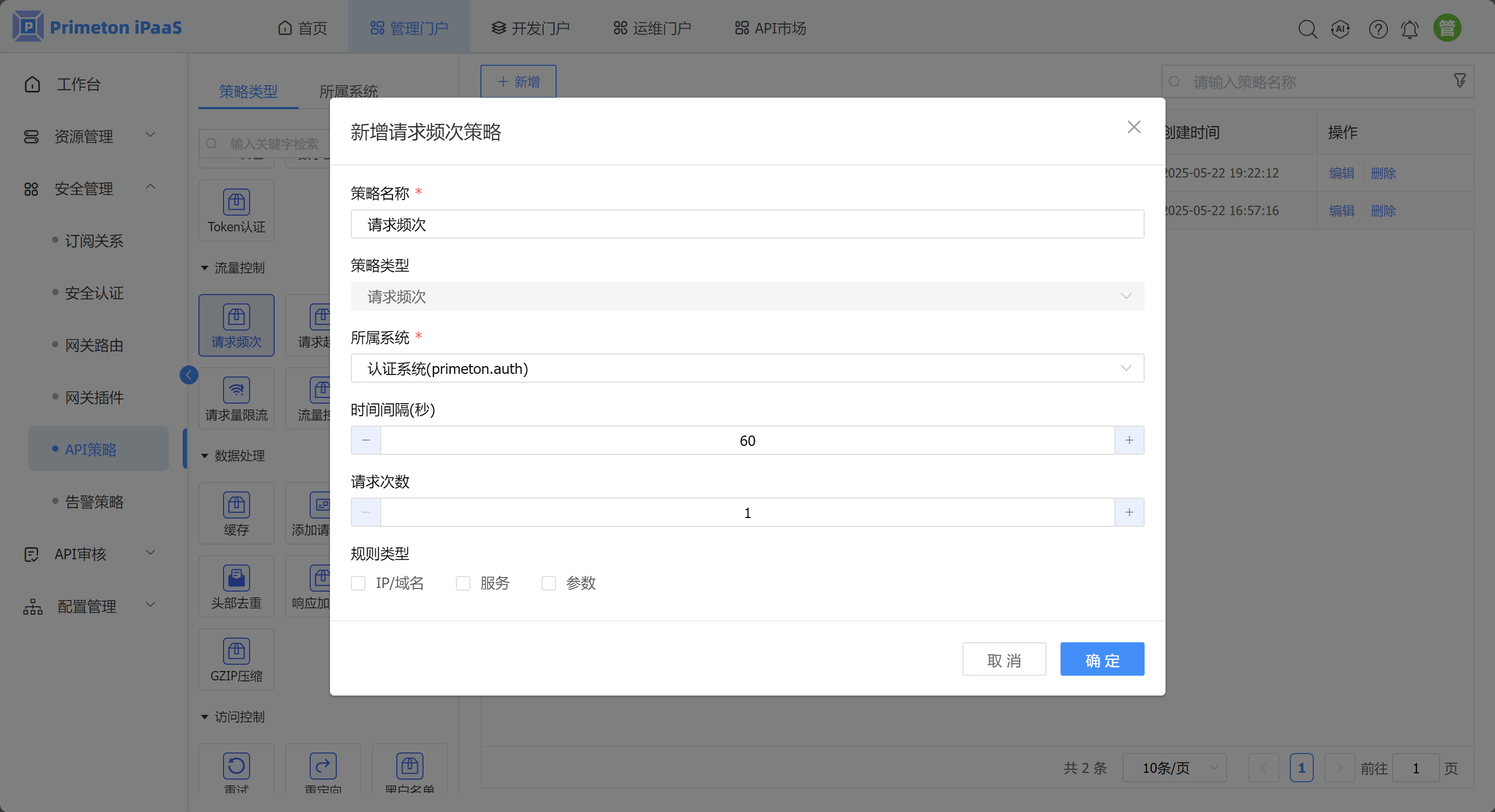 配置请求频次策略
