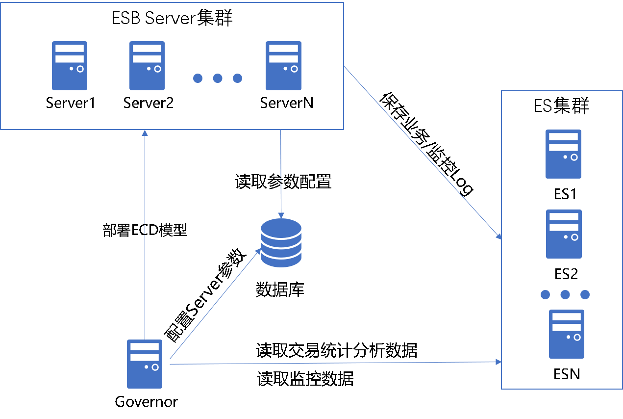 ES集群 用于存储、统计分析接口调用过程中 ESB server 拦截器生成的日志,以备检索。