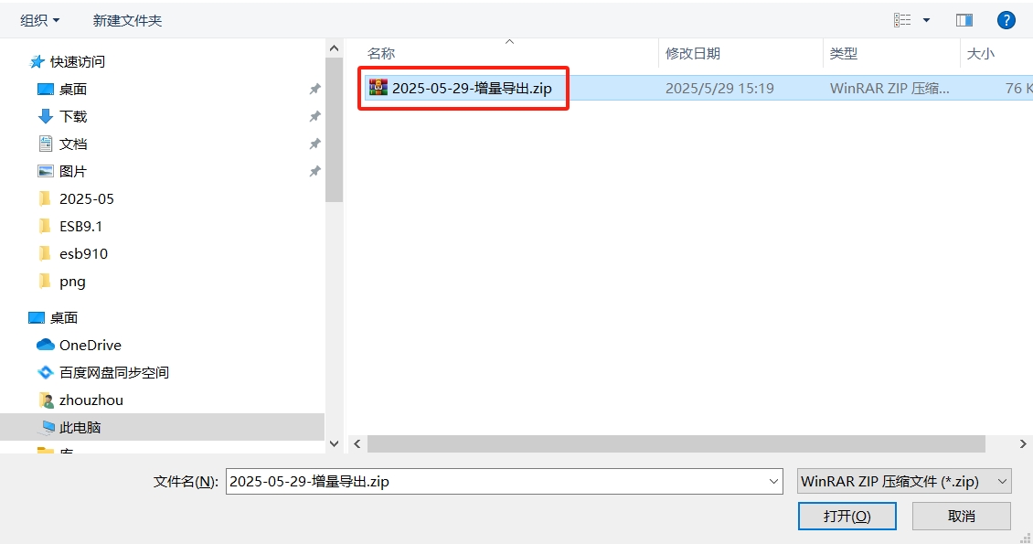选择从测试环境导出的增量压缩包,然后上传压缩包,导入增量数据。