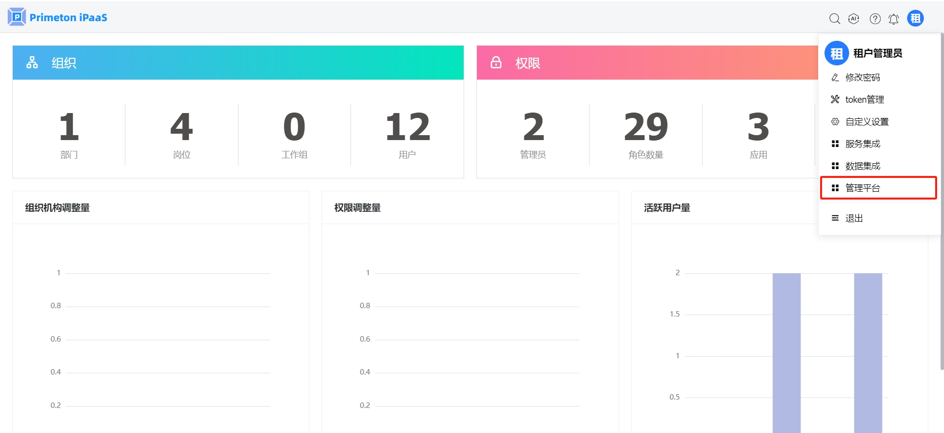 浏览器访问http://nginx-ip:nginx-port/, 用admin账号登录。进入“组织中心->账号管理”页面,为manager用户添加角色。