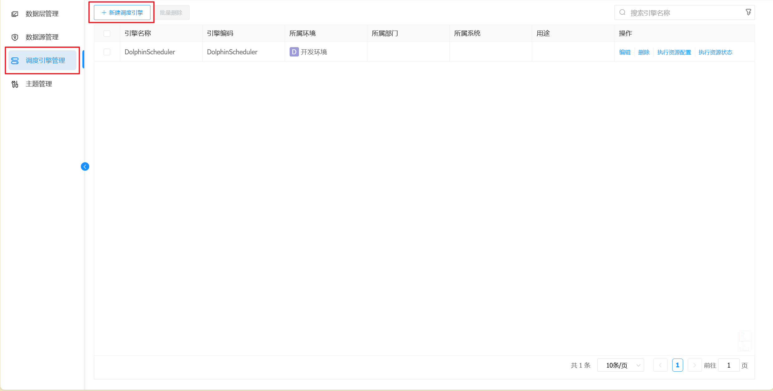 访问路径【公共资源】→ 【调度引擎管理】进入调度引擎页面。
