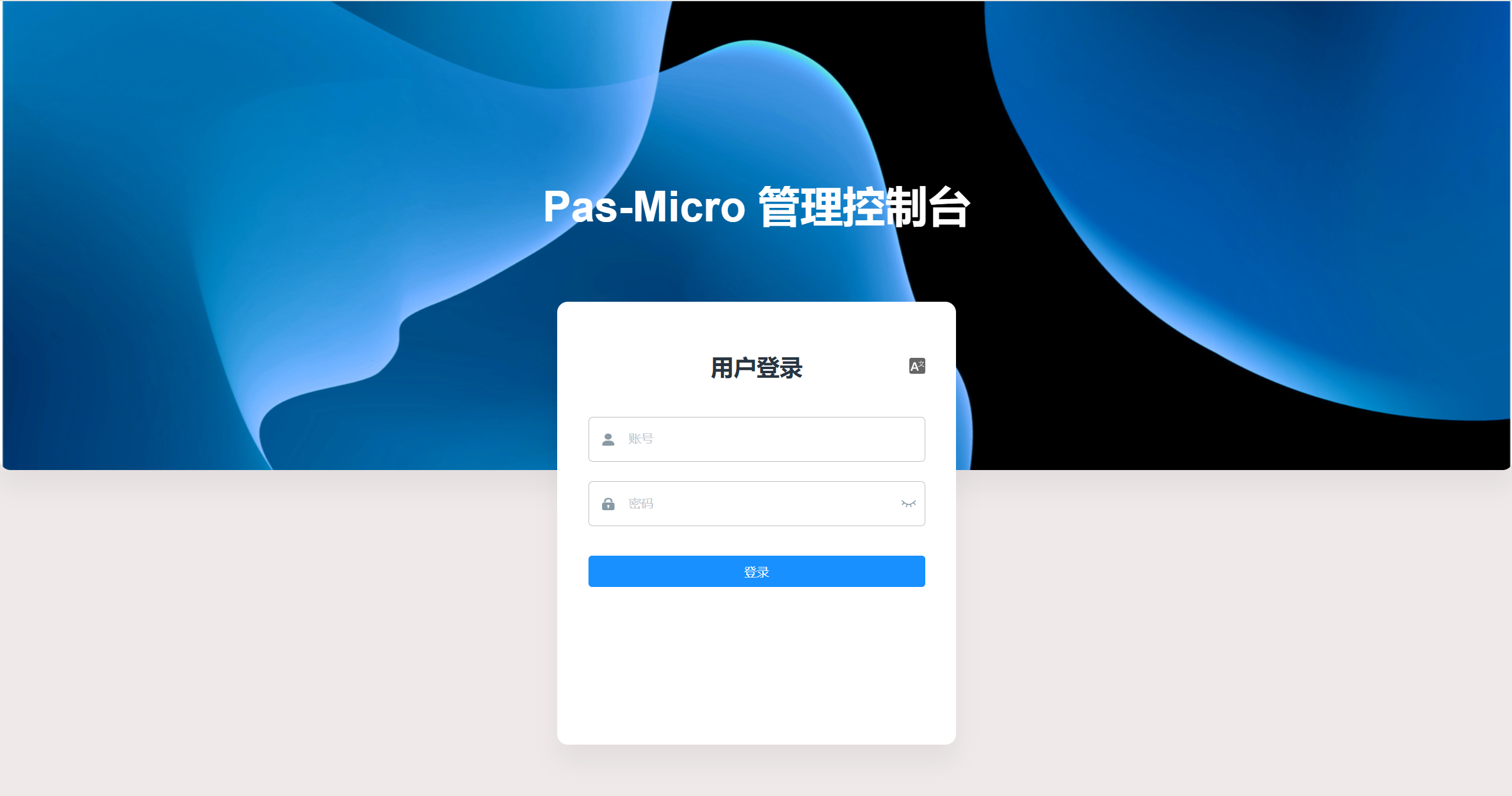 当服务启动完成,将进入PAS-Micro统一控制台的登录页,如图所示